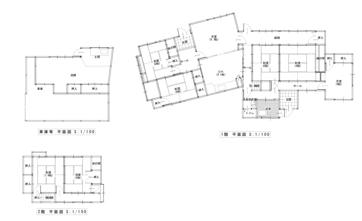 木造かわら・セメントかわら合金メッキ鋼板ぶき3階建て